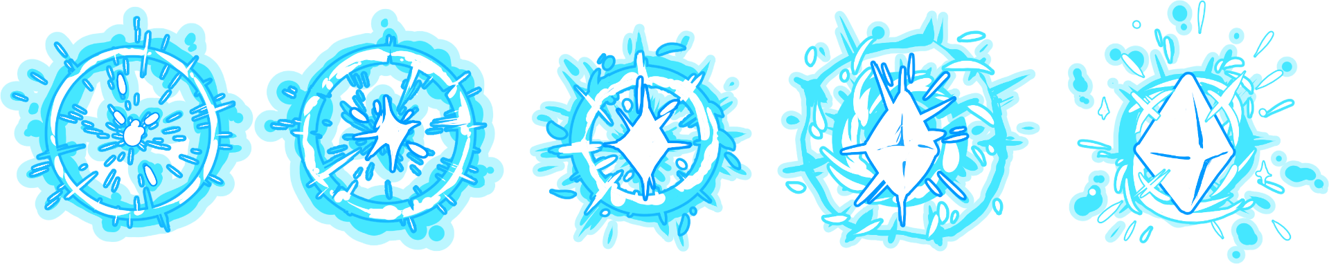 His preferred method of... anything, it's more common to see C'rik with his Blue magics than it is his Red. He refers to it as mimic magic, and his own casting as a mimicry of mimic magic."There's no one way to cast a spell" is a phrase C'rik likes to use. Through a unique method of pulling ambient aether and calcifying said aether into small, silvery crystals, C'rik is able to replicate a decent number of spells from various creatures! However no matter how many spells he may know, in any particular situation he can only juggle a few at a time before needing a short break. He has his favourites!There's no exciting story behind these Blue beginnings. It was simply a soul crystal he'd come across in a deal most found to be a scam. Luckily for him, he took to it (the magic, not the scam) rather quickly. Each spell he's capable of using is what comes with a story!