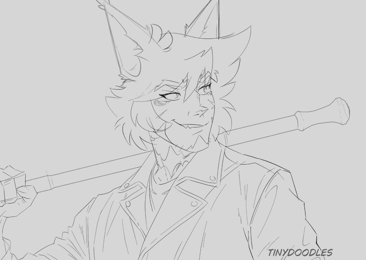 Chipper, extroverted, curious, friendly... and purely unaware of failure.He walks with a playful swagger and a slight limp in his left leg. Expressive with flair, he's a natural mimic (and showman at heart!) with some odd habits and a fatal curiosity about him; this devil-may-care miqo'te is plagued with wanderlust.